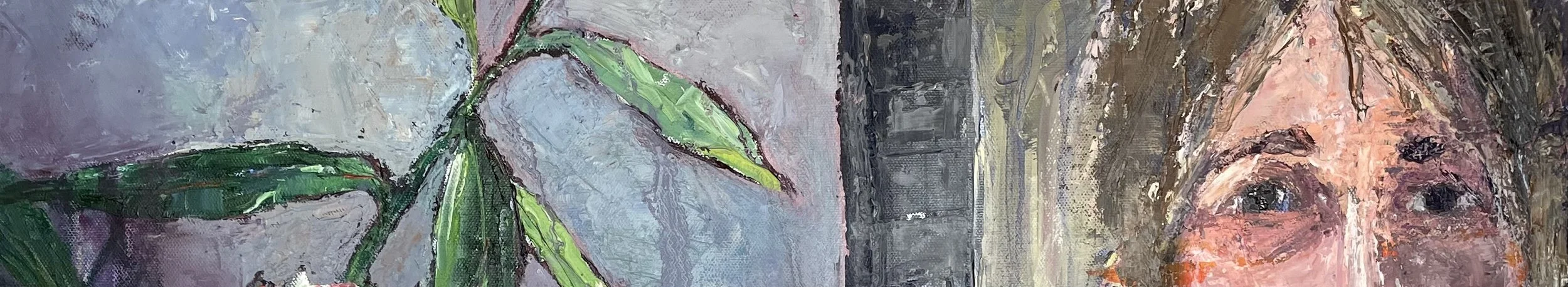 I paint with oils on canvas using palette knives, sometimes incorporating paper and fabric.